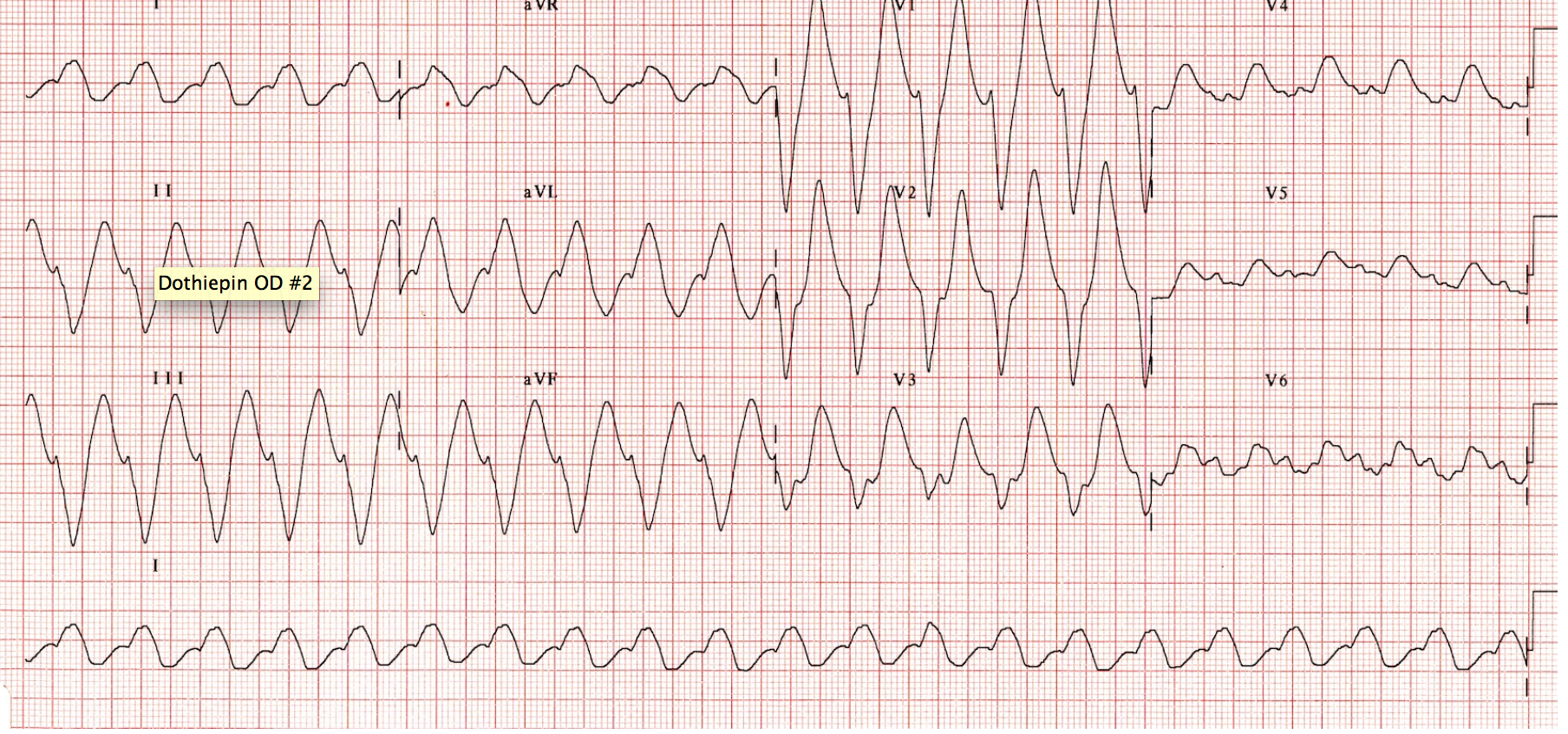 - AVR: Prolonged QRS is a predictor of seizures and VT in TCA overdoses. There is also a dominant R wave (>3mm) and R/S rail >0.7mm.