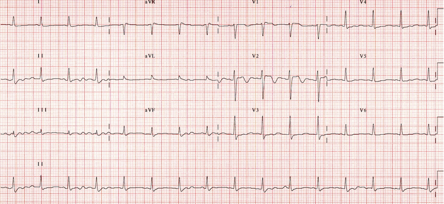 You diagnose the patient and treat him. His ECG is now: