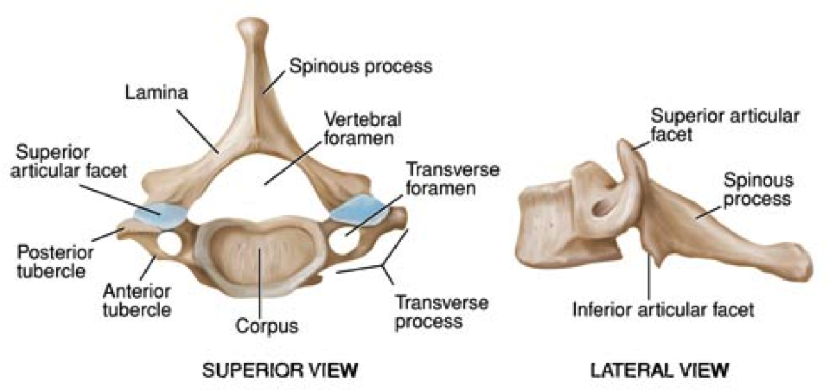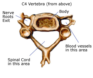 Imagine you are the ED registrar at work in a TU. A 22 yrold male has been brought into you after jumping head first into the shallow end of a swimming pool. His friends, who witnessed the incident, immediately found him prone at the bottom of the pool and dragged him out. He is GCS 15, BP 130/80, P 110, Sats 99% (on O2). The ambulance crews have immobilised his C-Spine with a hard collar, blocks and tape. (Im not going to mention my own thoughts on triple immobilisation in this post!, lets just stick to ATLS for now). His primary survey is normal until “D” where he has reduced power 2/5 in both arms and 0/5 in both legs. It appears he has a sensory level at C6 and has priapism. A CT Head to Pelvis is performed with no evidence of injury except a C-spine abnormality. A recap of the anatomy of the lower cervical spine fractures (C3-C7):